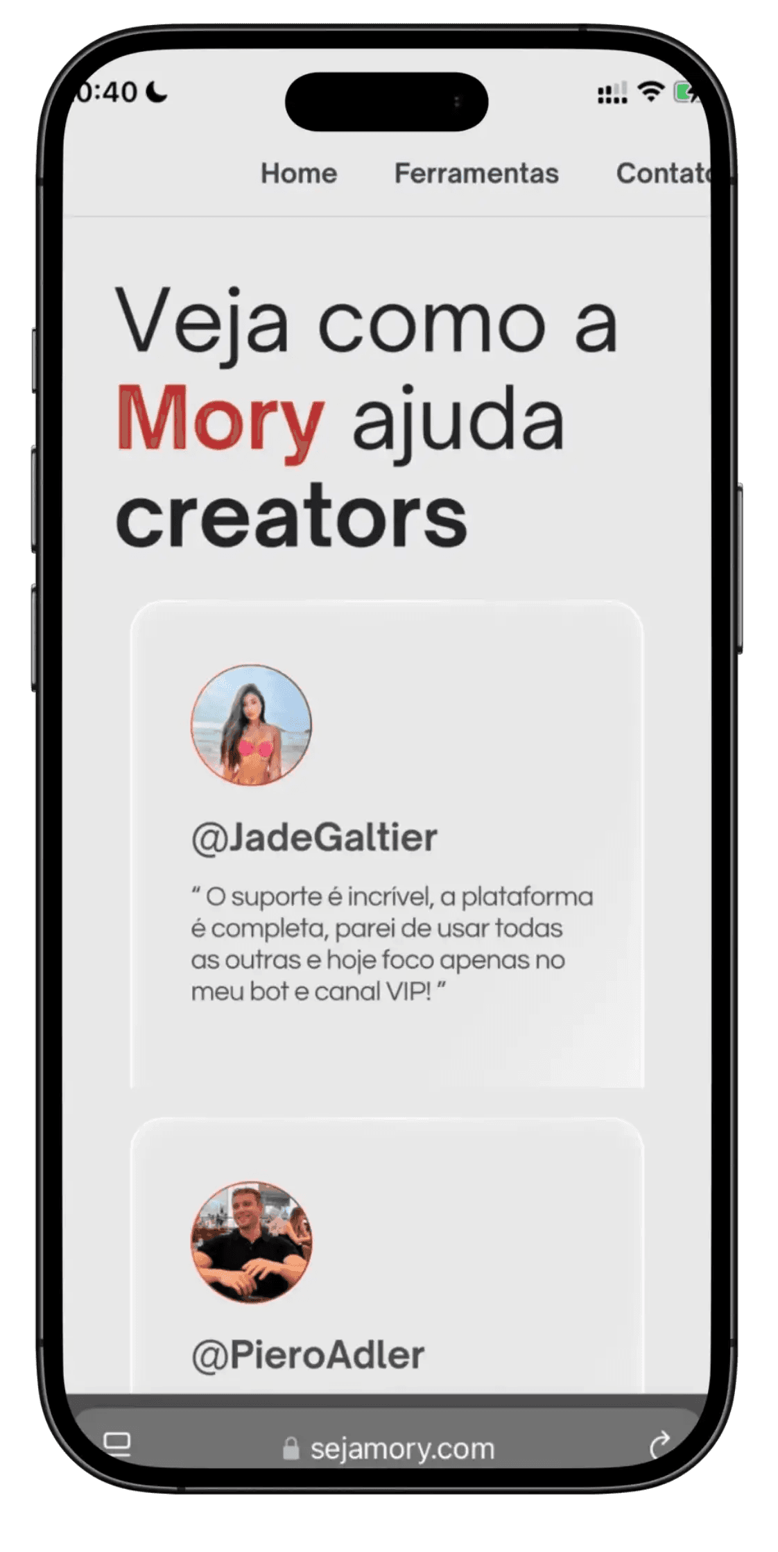 "Simples, direto e sem trava. A Mory entende o que a gente precisa como criadores de conteúdo"