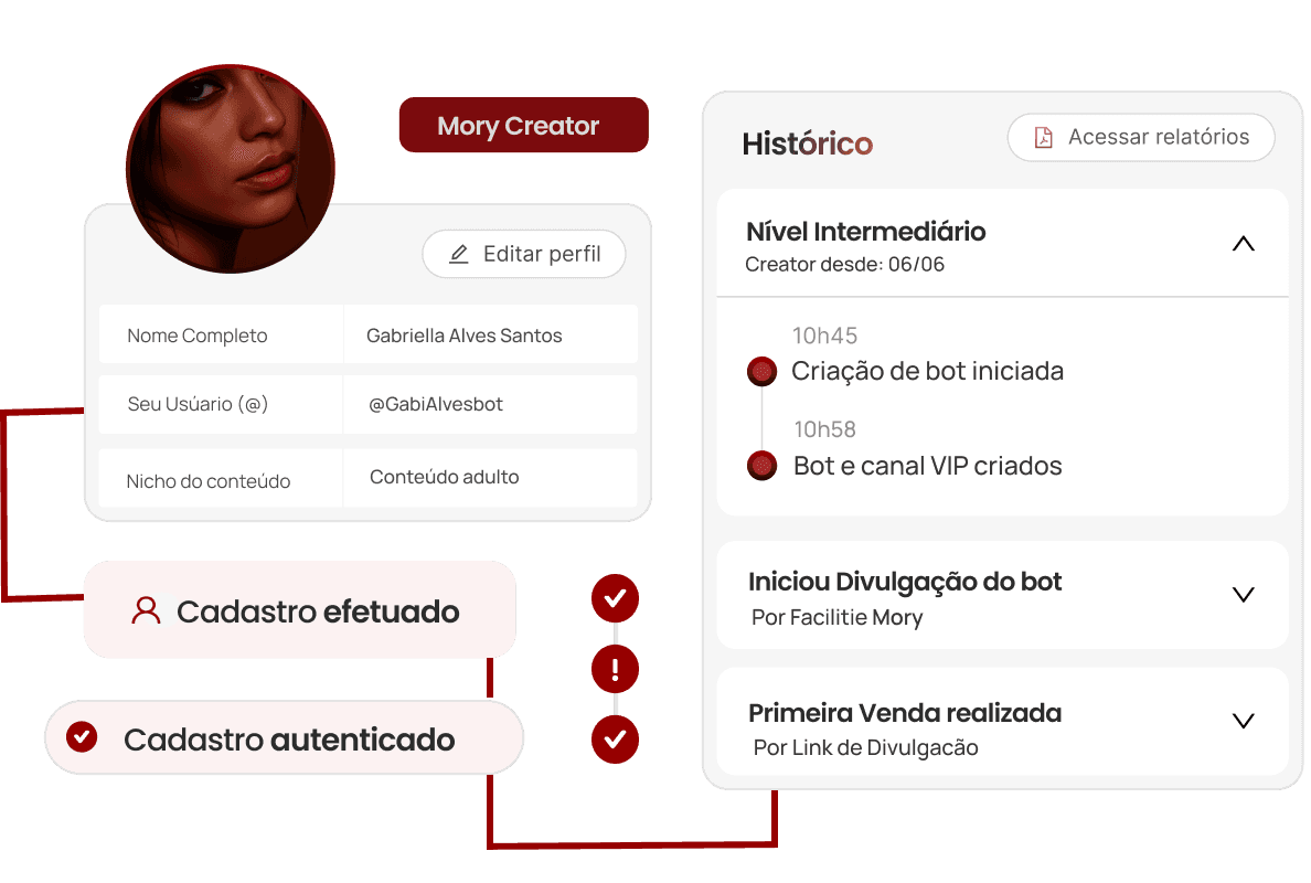 "Eu usava outras plataformas, mas nenhuma era pensada pro Telegram. Com a Mory, tenho tudo unificado e amoo"